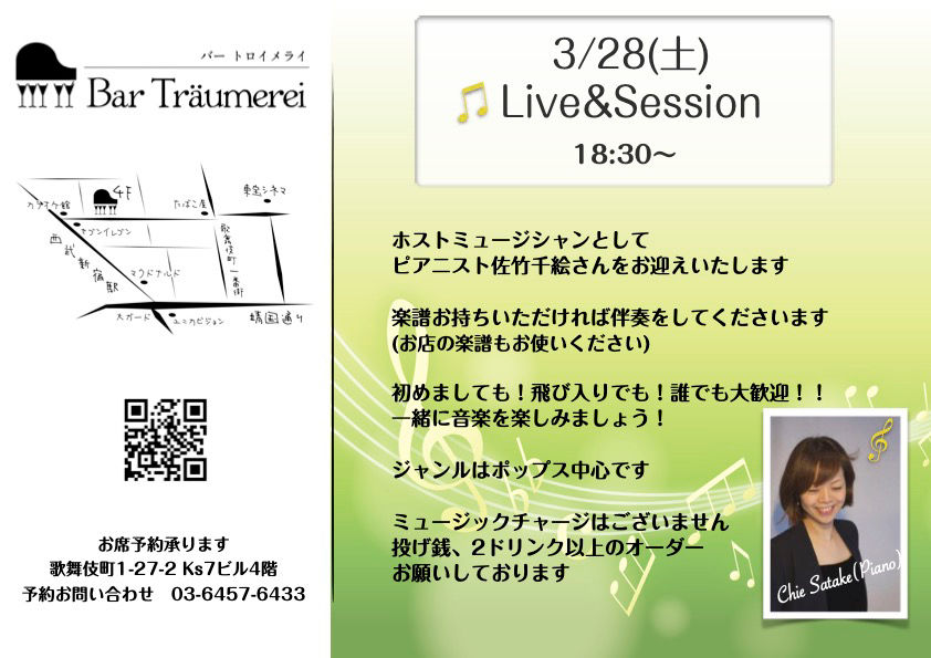 3/24okiyuri1 日前読了時間: 1分3/24(火)通常営業🈺17:00開店24:00閉店(ラストオーダー23:30)美味しいシロップ使ってのノンアルコールカクテルもよく出ます🍸お酒を控えたい日などにもおいでください🤗ーーーーーーーー3/28(土)ピアニスト佐竹千絵さんをお迎えしてのオープンステージです。皆様の演奏のサポートをしてくださいます🎹ご予約お待ちしております。#バートロイメライ #ピアノバー #新宿バー #歌舞伎町バー